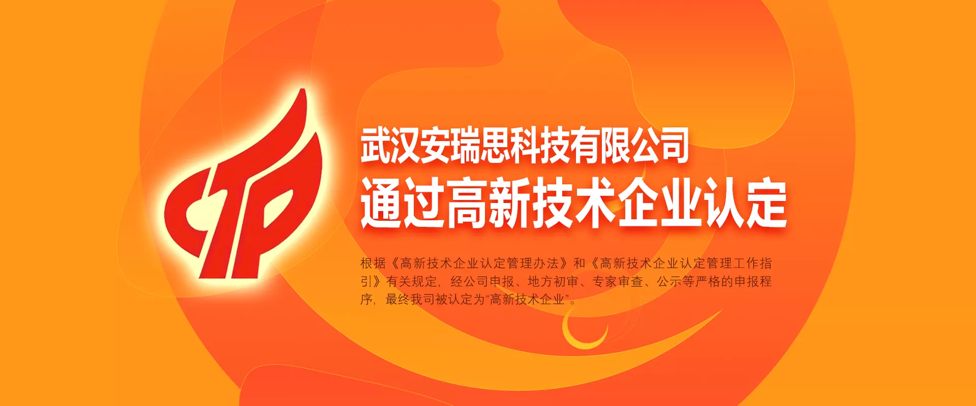 2023年1月6日,武汉安瑞思科技有限公司通过了由科学技术部火炬高技术产业开发中心,税务机关组织的高新技术企业认定,并荣获“高新技术企业”称号。这次成功入选高新技术企业,充分说明了相关部门对武汉安瑞思科技有限公司多年来工作的肯定,也成为本公司技术水平和产品技术含量定性的一个重要标志。“高新技术企业”,是指在国家重点支持的高新技术领域,持续进行研究开发与技术成果转化,形成企业核心自主知识产权,...